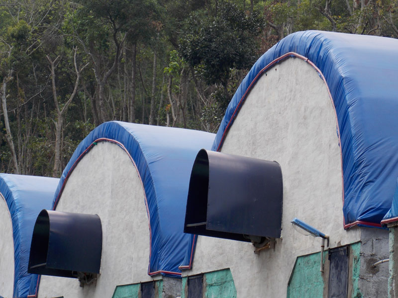 Once the mushroom spawn are mixed into the compost, it is steam pasteurized to kill weed seeds and any other harmful agents. A mixed layer of sphagnum moss and lime is top dressed onto the top of the pile for the growth of mushrooms.